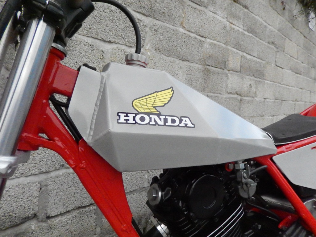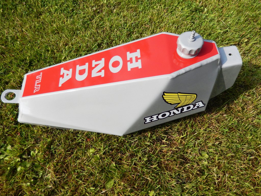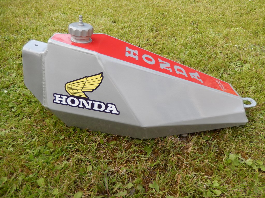 Petrol tank made from 1mm thick aluminium, which only weighs 969g compared to the original steel tank at 2703g.