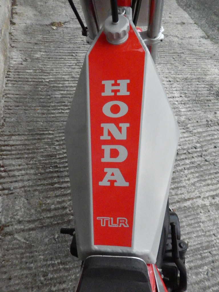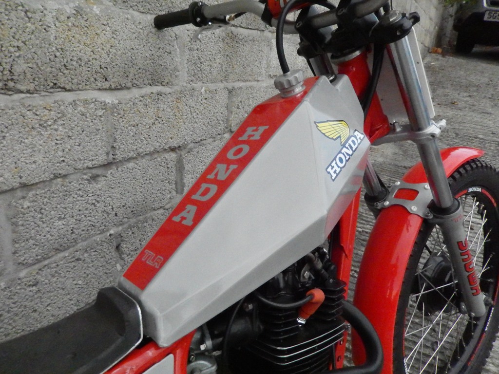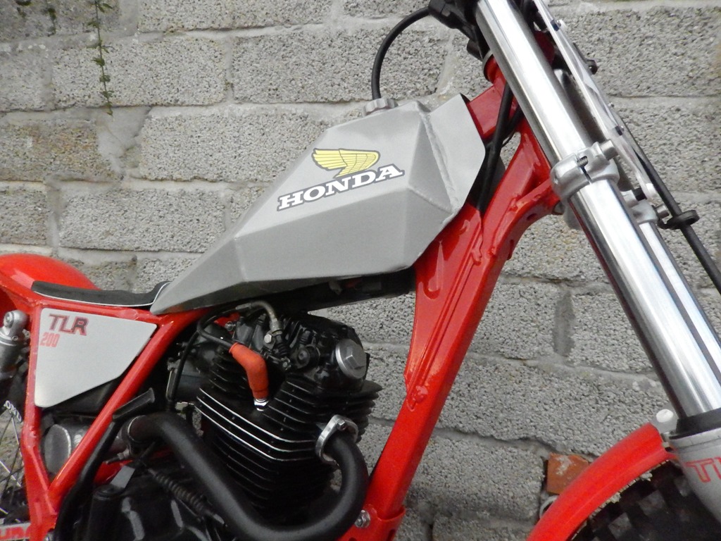 Each time I build a twinshock trials bike I like to try different ideas, this time instead of buying a petrol tank, I thought I would make an aluminium one, so I spent several hours making prototype card templates and finally got a pattern that seemed to work. The basic shape was copied from the Gas Gas 327 tank on my Honda twinshock special.
